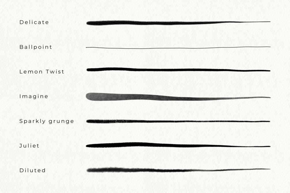 Whether you're practicing modern calligraphy, creating bold brush lettering, or just doodling for fun, these brushes will give your strokes the perfect balance of smoothness and texture.